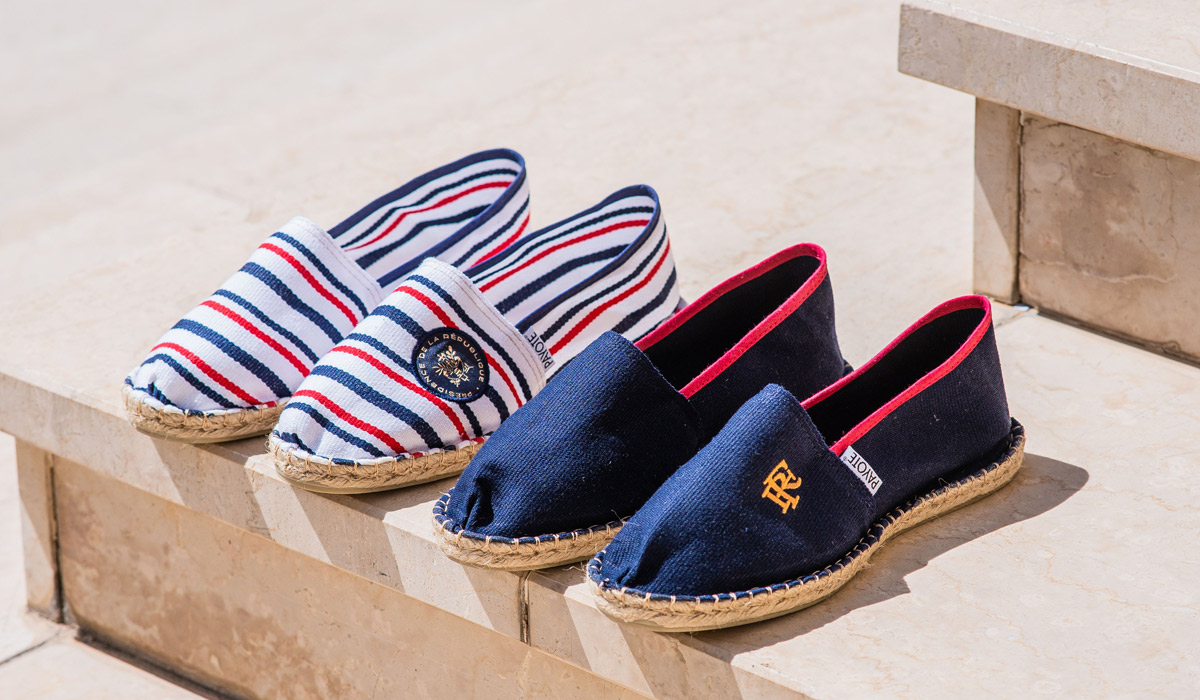 Payote fait partie des labels sélectionnés par l’Élysée pour être vendu sur l’e-shop du Palais présidentiel. Pour l’occasion, la marque d’espadrilles made in France a planché sur deux nouveaux modèles en toile de coton recyclé sur lesquelles le sceau de la présidence de la République a été délicatement brodé. Portant haut le bleu, blanc, rouge, elles surfent sur l’idée d’un art de vivre à la française. Créée par Olivier Gelly en 2016, Payote produit aujourd’hui 90 000 paires par an dans un atelier de Mauléon, dans le Pays basque. Ces espadrilles 100 % françaises conjuguent tradition et modernité dans un esprit résolution french touch. À découvrir sur boutique.elysee.fr.